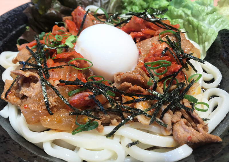 「地粉うどん」と「100g以上の野菜サラダ」、そして「ごまだれ」の相性は抜群!アクセントの「くるみ」で味に深みが出ます。是非、召し上がって下さい!