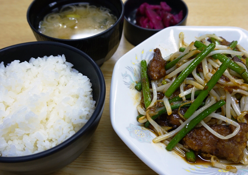 豚レバーとニンニクの芽のスタミナ炒め定食