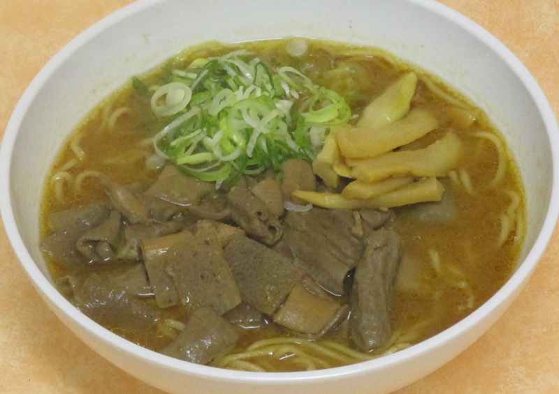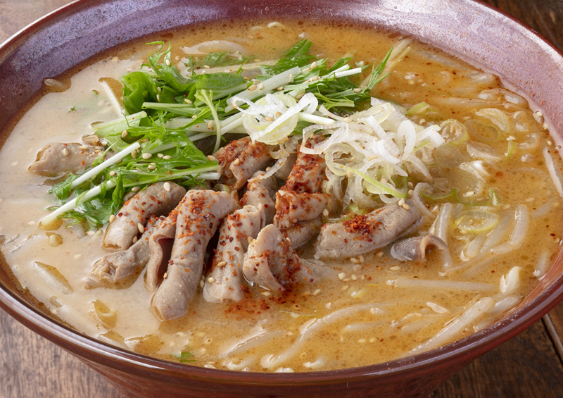 信州味噌で味付けをした、豚モツ煮をトッピング。水菜とモヤシで野菜もとれる、ボリュームのある味噌ラーメンです。