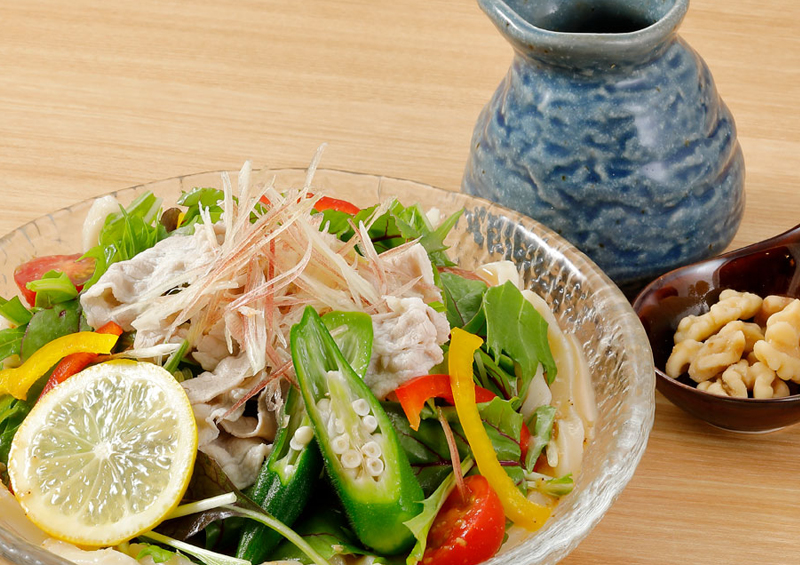 夏野菜の冷しゃぶサラダうどん・くるみ添え