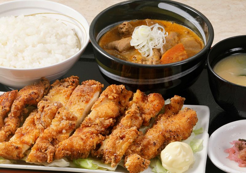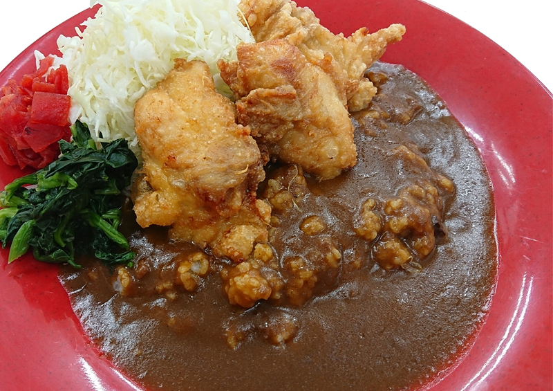 特製ダレに漬け込んだジューシーなから揚げを、ピリ辛なカレーにトッピングしました。