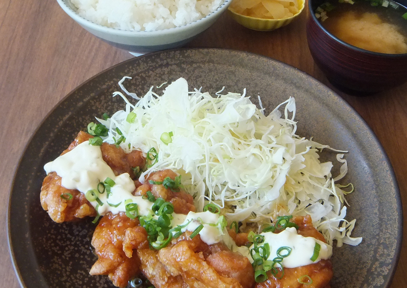 信州のご当地メニュー、山賊焼きです。特製の明太タルタルソースでお召し上がり下さい。