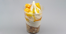 さっぱりとしたバニラ味のソフトクリームにマンゴーの甘味が抜群にマッチ!!この季節にピッタリ期間限定商品です。