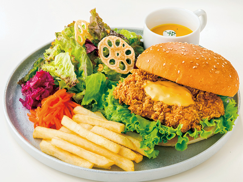 「那須どり」を使用したフライドチキンは「サクッ、やわっ、ジュワ~」な自慢の一品。それをバンズではさんで贅沢にもプレートにしました。