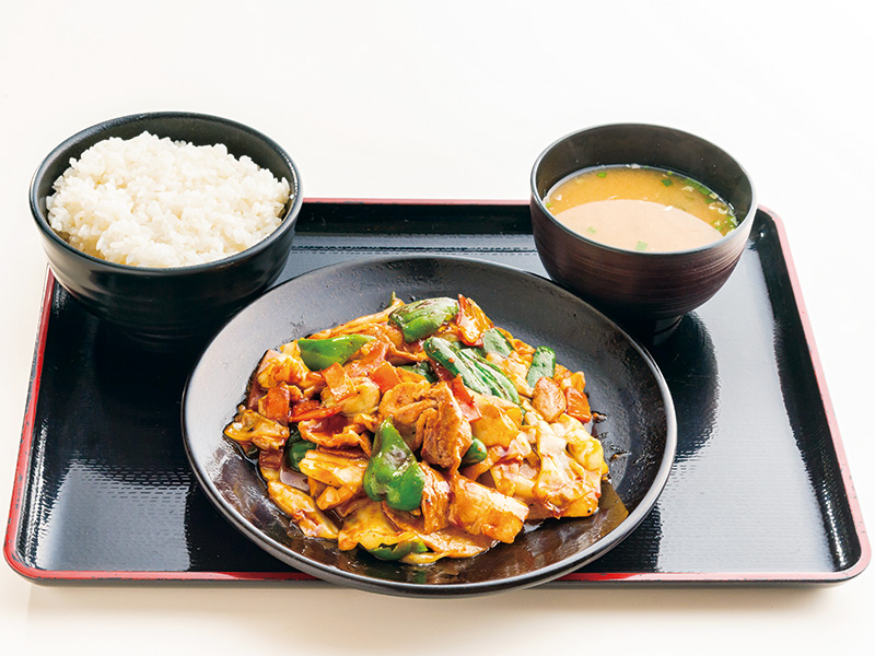 味噌ベースの甘辛いたれを野菜とお肉にからませた回鍋肉。おいしいと評判の当店定食の新しい仲間です。お肉と野菜はちょっぴり増量中です。