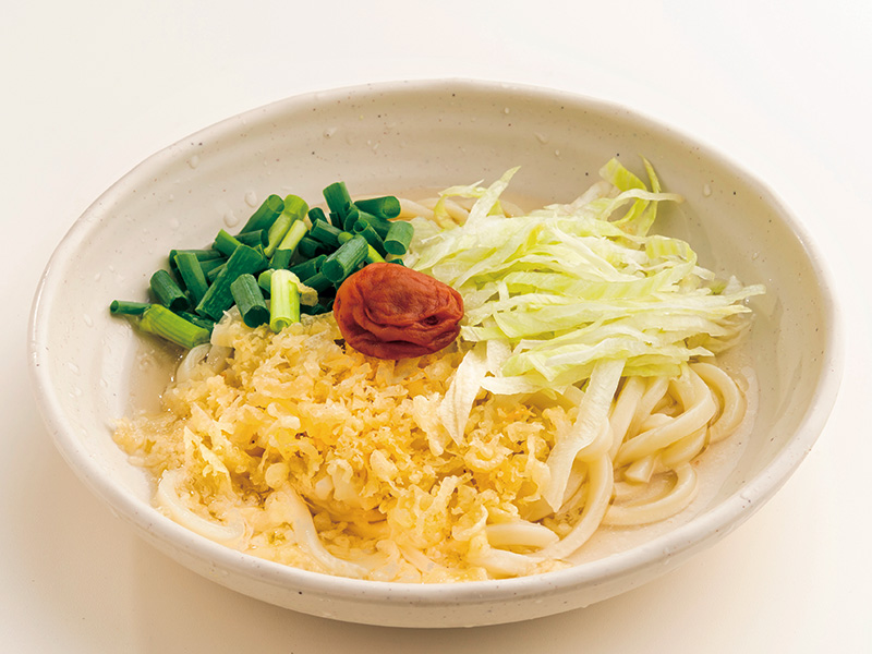冷水でしめたうどんにさっぱり梅風味のつゆをかけ仕上げました。梅のパワーで夏を乗り切ろう!