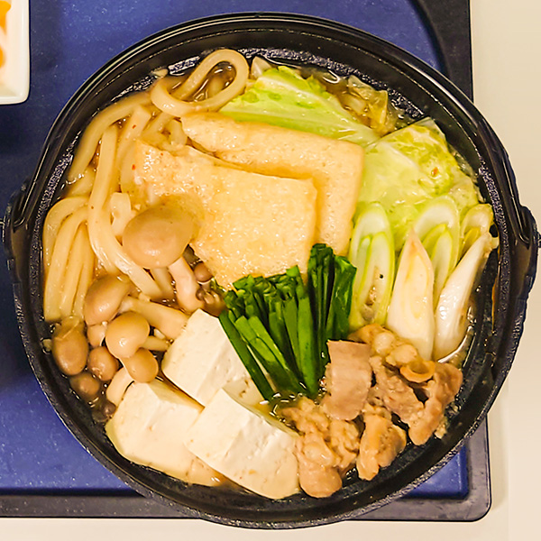 岩手町の『肉のふがね』から発売されているご当地グルメ『岩手ホルモン炊き』をベースにした鍋うどん。秘伝のタレが染み込んだ野菜やうどんは絶品。