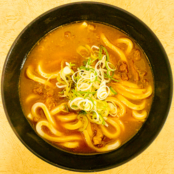 当店伝統の「ジャワ風カレー」を関西風味の鰹だしで割った自慢の逸品。モチモチ食感のうどんとスープがよく絡み、相性抜群です。