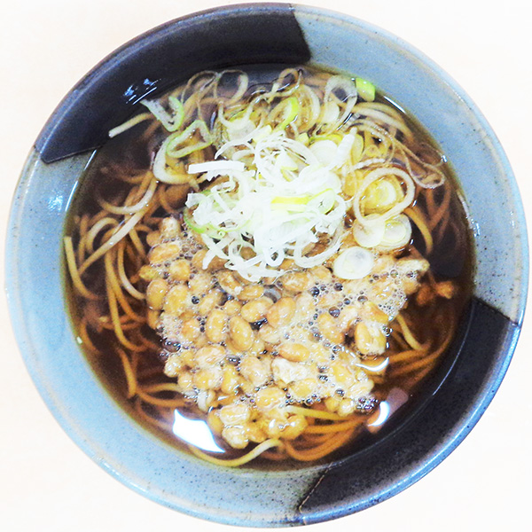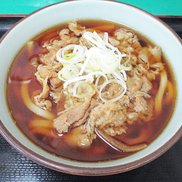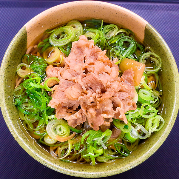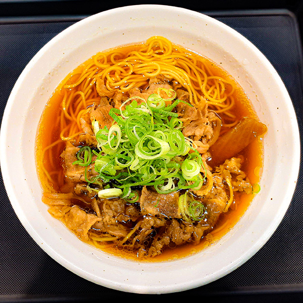 カツオと昆布の出汁がきいたつゆに甘辛なお肉をのせたとっても大満足な一品です。たっぷりネギの風味がいいアクセント!