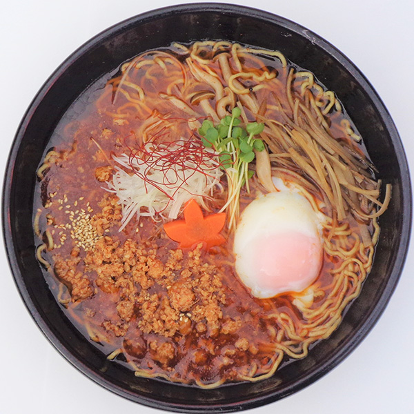 仙台味噌を使用したスープに野菜もたっぷり、そぼろ肉は甘辛く炊いた牛たんを使用しております。