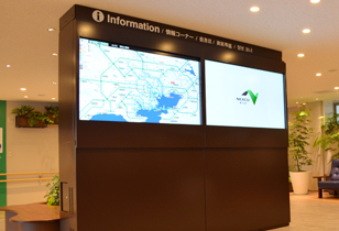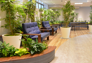 トイレ前のホールには、情報コーナーを併設した休憩スペースを配置しております。運転時の疲労回復及びストレスを緩和する癒しのスペースとしてご利用頂けます。
