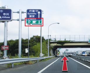 京葉市川IC出口の分岐を京葉市川PA、行徳・浦安方面へ直進