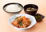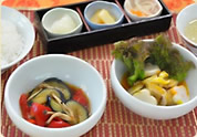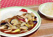 地元の秋なすを使った中華風の炒め物と茨城県ブランド豚「ローズポーク」のバラ肉とハーブをノンカロリーのヤシ油で調理した2品を同時に楽しめる、ヘルシーながら食欲の秋にピッタリな中華御膳。