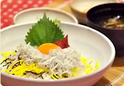 いばらき至高の逸品、生食用しらす「海の輝き」を釜揚げにして盛り込んだ贅沢な丼!茨城県水産試験場が開発した船上での鮮度管理技術と久慈浜漁師の丁寧な仕事によって生み出される新鮮な生しらすは生産量が限られており大変貴重な一品です。濃厚な奥久慈卵との相性も抜群、練り梅のアクセントも効いています。