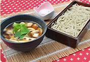 温かい汁に冷たい蕎麦をつけてお召し上がりください。