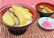 かき揚丼のかき揚げは、いかと甘エビの入った大きな特製かき揚げです。