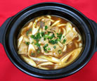 鍋焼きうどん越の鶏つくねをトッピングし、コシのあるうどんを醤油ベースで仕上げました。寒い冬にぴったりのあったかメニューです。