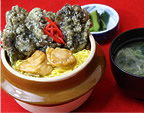 上信越道 東部湯の丸SA(下) 【スナックコーナー】 790円上田産紅しぐれ鶏と信州産舞茸の黒ゴマ天ぷらをのせた釜飯