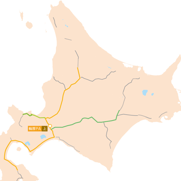 | 【E5】道央自動車道 | 輪厚PA | 上り線 | 24H | お土産品 例:白い恋人等 |