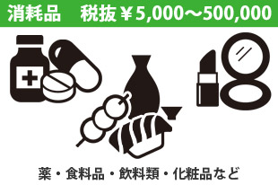 - 消耗品は合計税抜5,000円~500,000円以下となります。