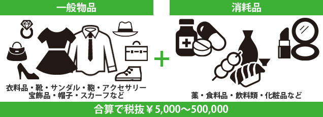- 一般物品と消耗品を区分して、これまでと同様の免税対象要件で免税販売することも可能です。
