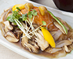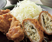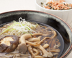 まいたけやブナピー、エリンギなどが入ったとろみのついた汁につけてお召し上がり下さい。