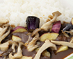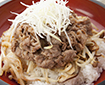 期間限定メニュー! 和牛切り落としときのこをたっぷり使い、ステーキソースで仕上げた期間限定の一品です。
