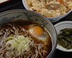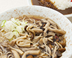 きのこ好き集まれー! 秋の味覚きのこに舌鼓!きのこをたっぷりとかけたそばとミニカレーのセットです。