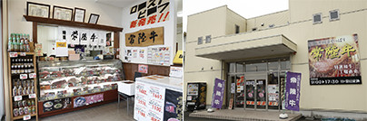 茨城町にある、工場直売の精肉店。ショーケースには「常陸牛」のさまざまな部位がズラリ!焼くだけの“手造りハンバーグ”などの加工品もご用意してます。