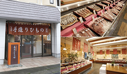 130年以上続く老舗の森寅。手造りの自慢の干物が並ぶ明るい店内。