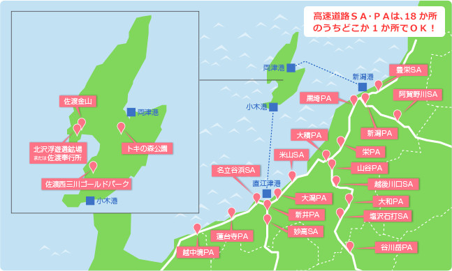 佐渡島島内と高速道路のSA・PA をめぐるスタンプラリーで