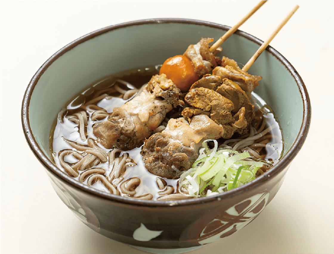 美唄市にある鳥乃家本店製造「美唄やきとり」を使用。炭火やきとりと鴨だしの香りあふれる出汁を地元流でめしあがれ。
