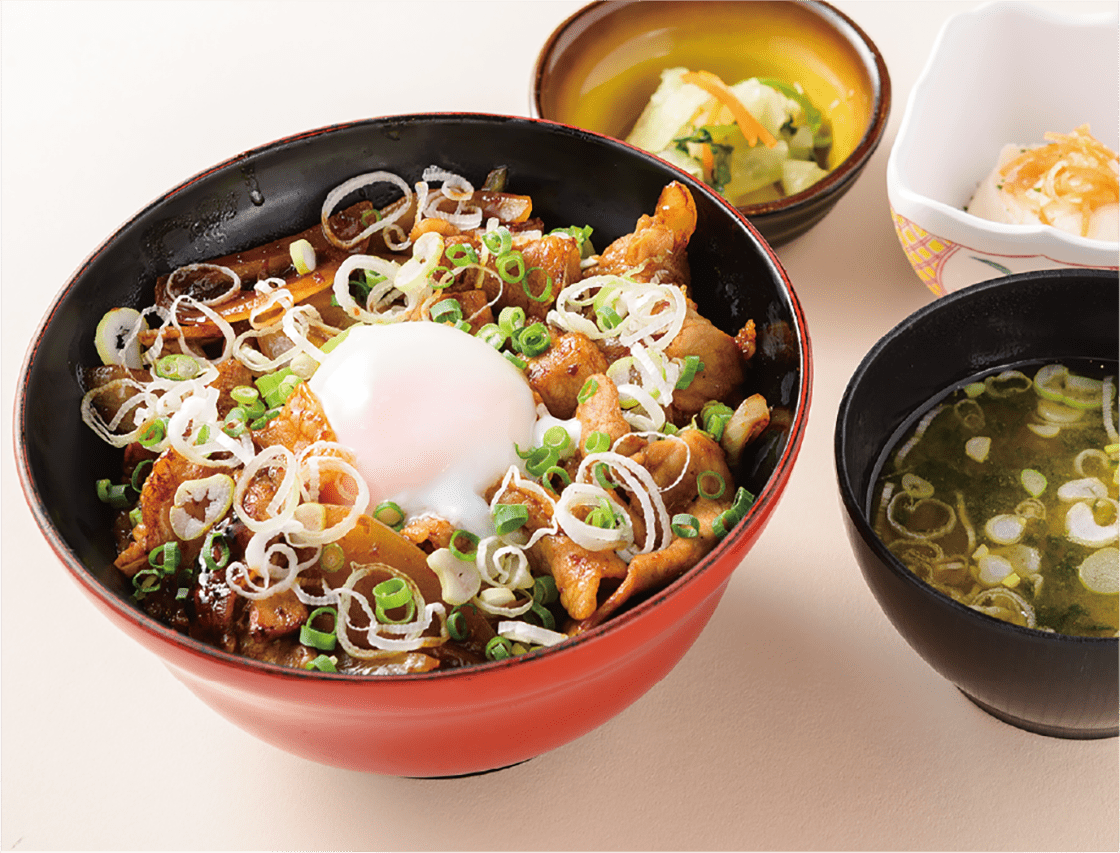 福島県の銘柄豚「麓山高原豚」を自家製ダレに漬け込み焼き上げた豚丼に、土湯温泉の温泉たまごをトッピング。スタミナ抜群でご飯が進む一品。