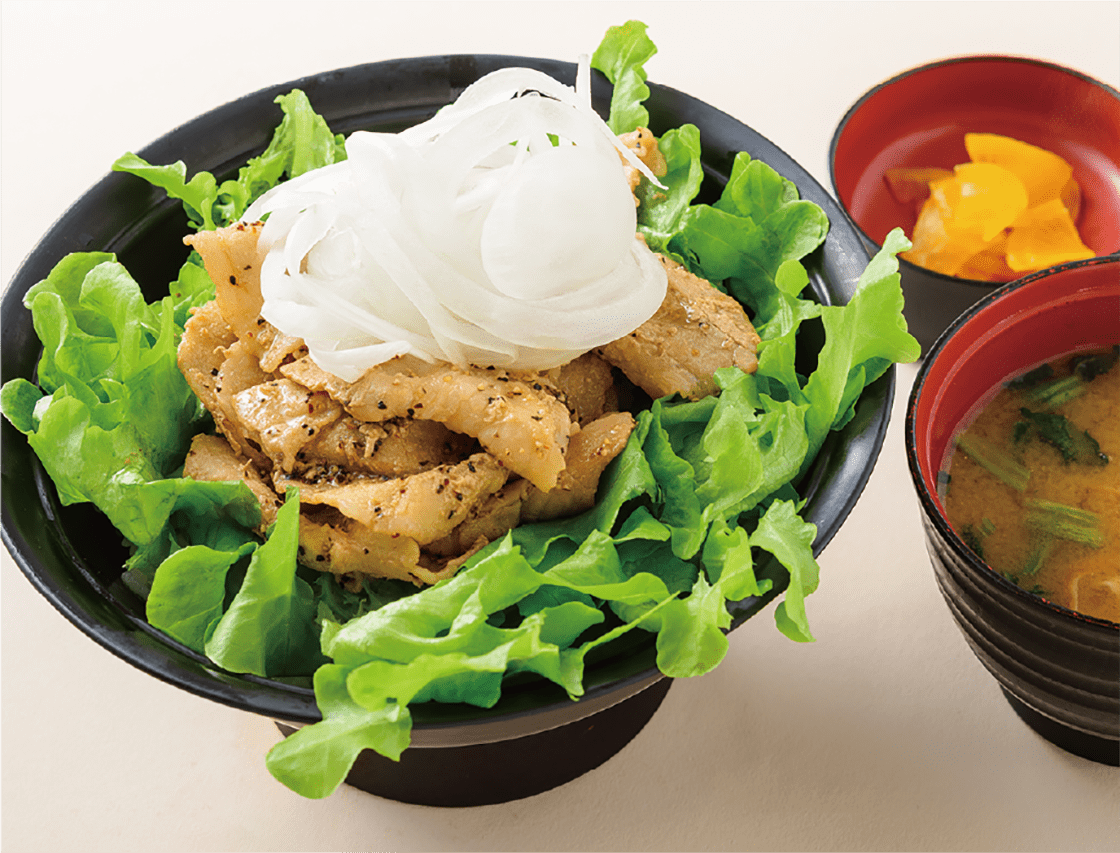 福島市でかつて営業していた洋食店「ブルドック」の看板メニューを丼ぶりにアレンジ。ブラックペッパーとレモンが効いた醤油味の豚肉でご飯が進む!