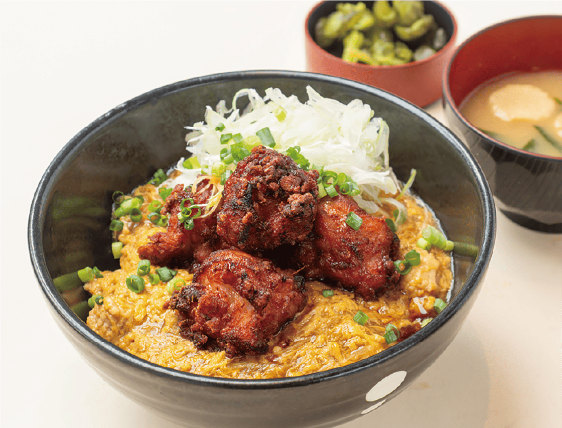 シャッキシャキ「深谷ねぎ」×ジューシー「唐揚げ」を、こだわりの卵と五鉄特製割り下でとじた、ふわ~トロ~な親子丼!