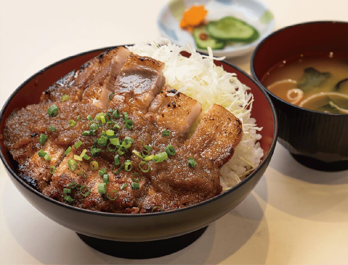 茨城県産ローズポークとにんにくを効かせた自家製タレがご飯と相性抜群の丼です。