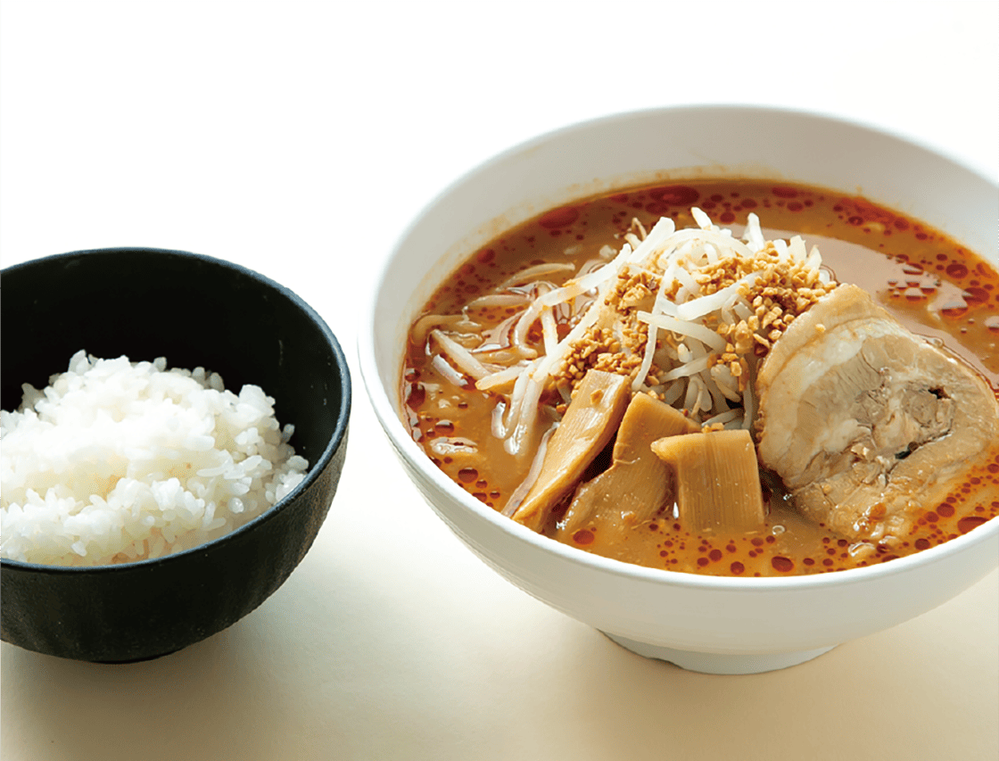 生産量日本一の八街産落花生ペーストを濃厚な味噌だれにブレンド。トッピングにもクラッシュ落花生をオン!
