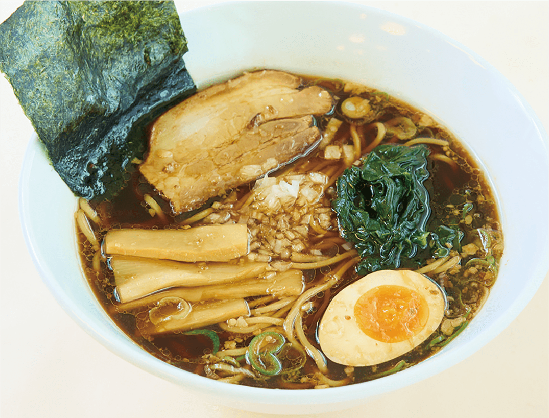 黒醤油スープに刻み玉ねぎでさっぱり感を加えた、当店1番人気「生姜醤油ラーメン」のアレンジメニューです。