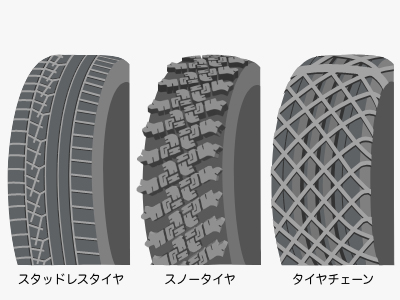 ノーマルタイヤで積雪や凍結している道路を走行するのは非常に危険です。