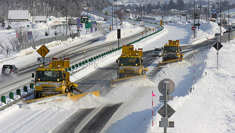 路面に積雪、圧雪、シャーベットが発生した場合、除雪を行います。時速20~40㎞で作業を行うため、渋滞が発生する場合があります。