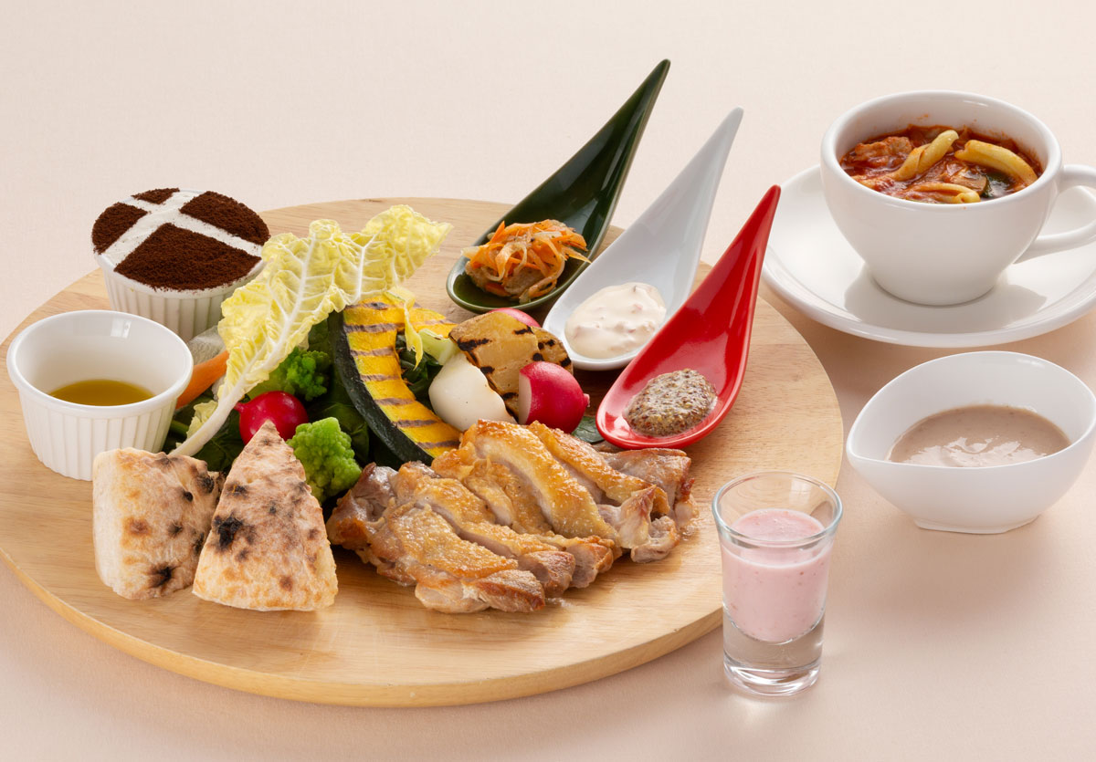 1 番のこだわりは地元昭和村の新鮮野菜。生産者から毎日仕入れるとれたてならではの甘さ、食感を楽しんでいただけます。肉料理には県内唯一の地鶏「上州地鶏」を使用。皮はパリっと中はジューシーに仕上げました。