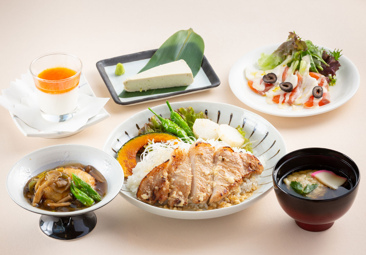 群馬県のブランド豚「上州もち豚」のローストや、妙義町産の新鮮な舞茸などを使ったそば米雑炊、長野県安曇野産ニジマスの円揚げ(つぶらあげ)など、群馬や長野の名産を味わい、旅の疲れを癒してみませんか。