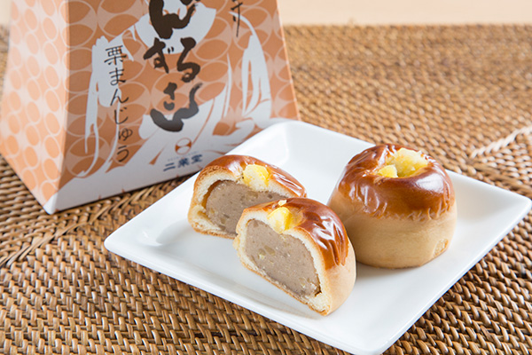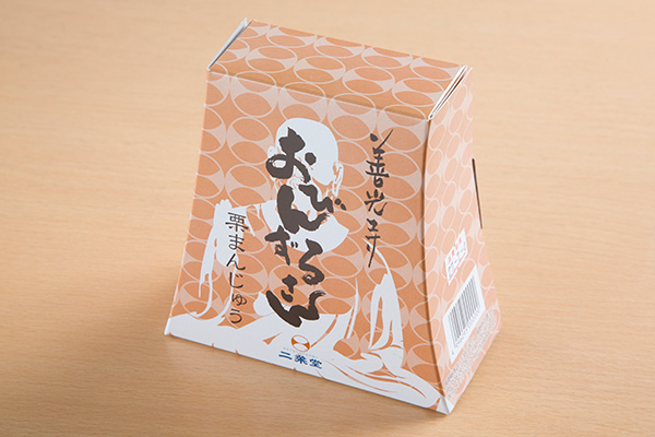 長野の銘店双葉堂自慢の一品。不思議な名前の由来は、病の患部と同じところをなでると苦しみ悩みを癒す、と伝えられている善光寺の「おびんずる」と言う仏さま。栗あんと栗の粒が美味しいおまんじゅうです。