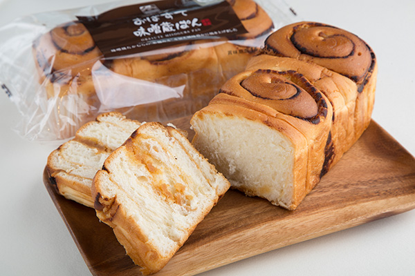 やわらかな生地の中にぐるりと味噌を練りこんだパンです。パンと味噌がこんなに合うなんて!そのままでももちろん美味ですが、ちぎって温めたパンにアイスクリームを乗せるとまた絶品です。