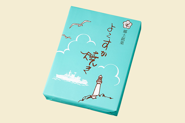 横須賀で愛される創業60年の老舗「いづみや」が贈る、港街「横須賀」をイメージした船の形の銘菓。しっとりしたどら生地に餡子たっぷり入っています。求肥入小豆あんと白大手亡あんの二種の組み合わせです。