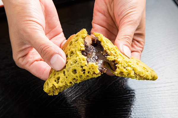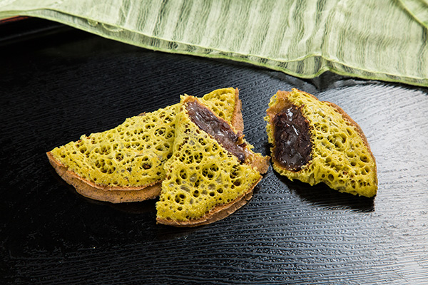 埼玉県産狭山茶を練り込んで焼き上げた生地で「小倉餡」と「求肥もち」をふんわりとつつんだ和菓子です。「狭山茶の香り」、「餡の甘さ」そして「求肥の食感」の三位一体が特徴です。