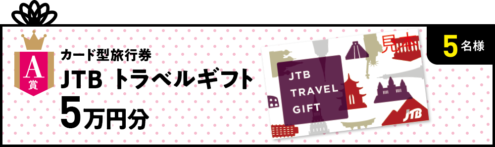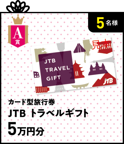 A賞:JTBトラベルギフト(カード型旅行券)50,000円分 5名様