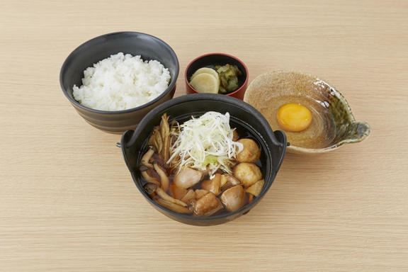 鬼平犯科帳の小説に出てくる「五鉄の軍鶏鍋」をイメージし、「国産軍鶏肉のブツ切りと、牛蒡、しらたき、高野豆腐、ネギ、五鉄特製の割下、玉子」を使用し、軍鶏鍋を定食スタイル(ご飯、お新香付)で再現いたしました。ぜひご賞味くださいませ。
