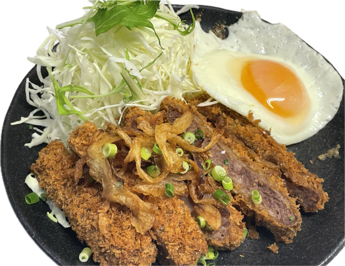目玉焼きをご飯に乗せたり、牛かつをトロッとした黄身に絡めて