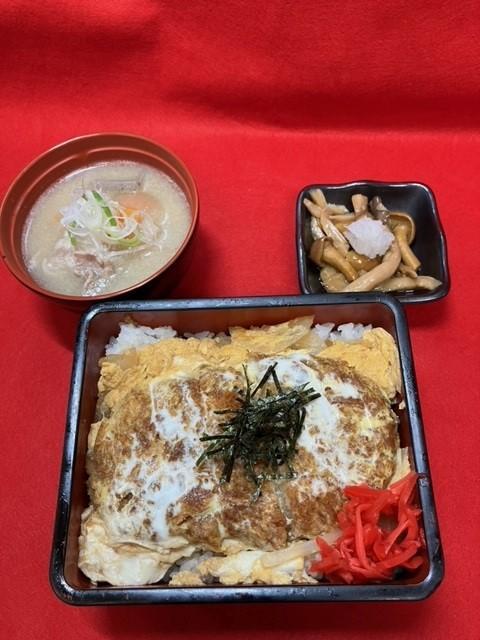 ボリューム満点の豚丼とホタテの出汁が香る煮物でお腹いっぱいにして